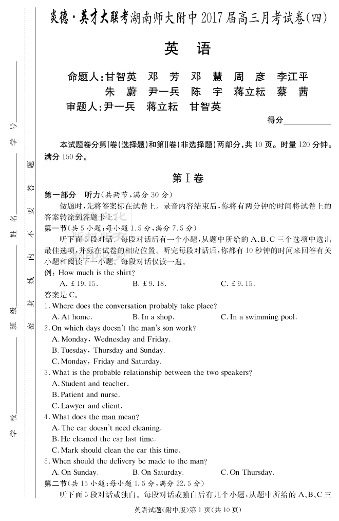 上一篇:【物理】炎德英才大聯考2017師大附中高三4次月考