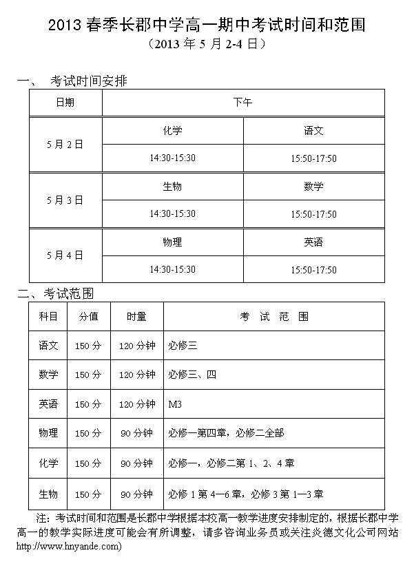 上一篇:2012年秋季長郡中學(xué)高一高二期末考試范圍時間安排(2013.01.20-23)