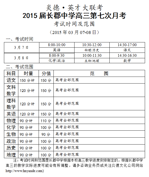 上一篇:炎德英才大聯考長郡中學2015屆高三第6次月考考試時間和范圍(2015.02.06-07)