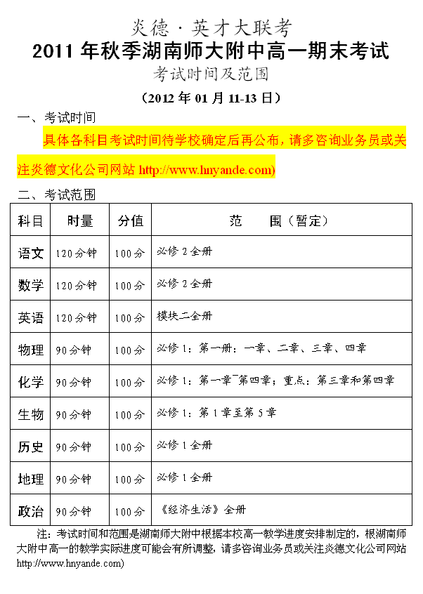 上一篇:2011秋季湖南師大附中高一第三次月考考試時間和范圍