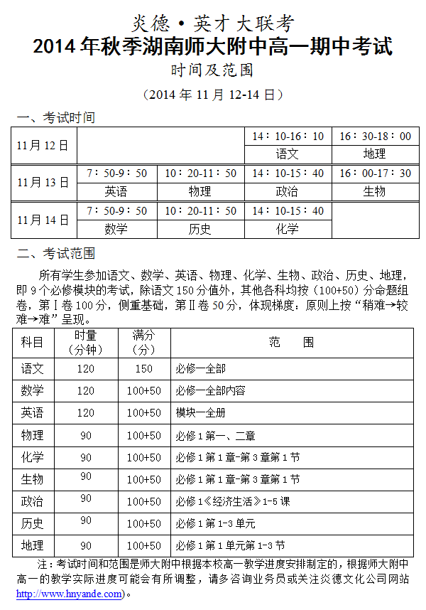 來源:炎德文化點(diǎn)擊:2014-11-03 09:25:04收藏本文當(dāng)前位置:考試范圍 師大附中 高一 正文