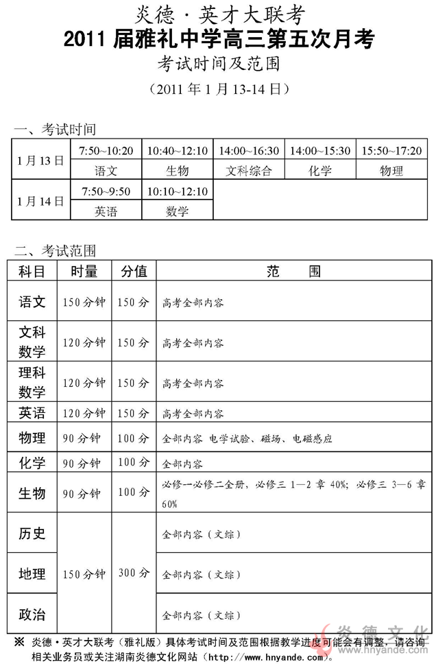 來源:本站原創點擊:2011-01-10 08:30:31收藏本文當前位置:考試范圍 雅禮中學 高三 正文