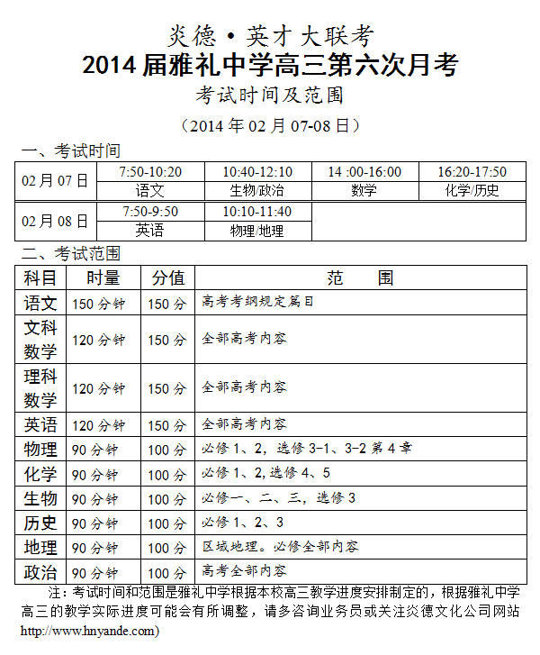 來源:炎德文化點擊:2014-01-24 15:24:20收藏本文當前位置:考試范圍 雅禮中學 高三 正文