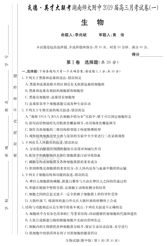 | 資源類別: | 名校月考 | |