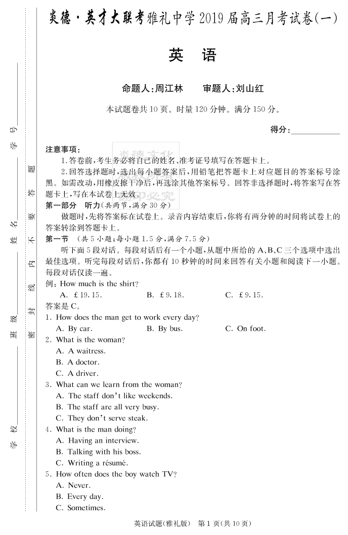 | 資源類別: | 名校月考 | |