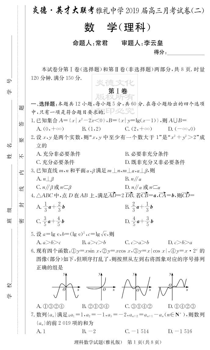 上一篇:【化學】炎德英才大聯考2019雅禮中學高三2次月考