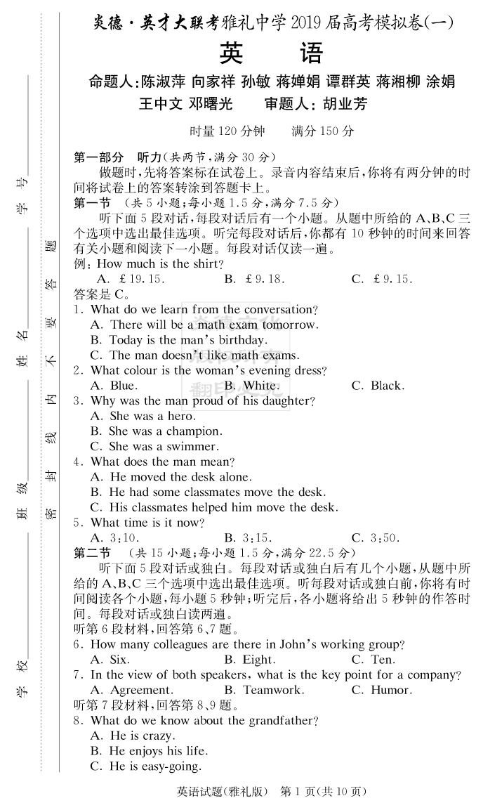 下一篇:【語文】炎德英才大聯考2019雅禮中學高三9次月考(模擬一)
