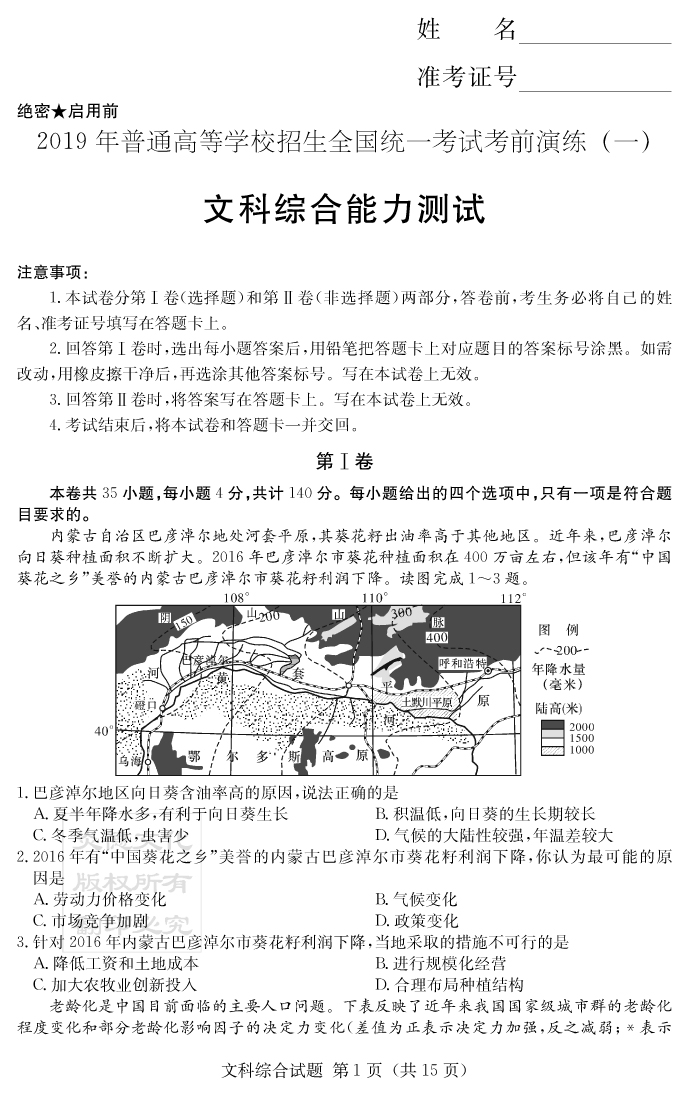 下一篇:【英語】2019年普通高等學校招生全國統一考試考前演練(一)