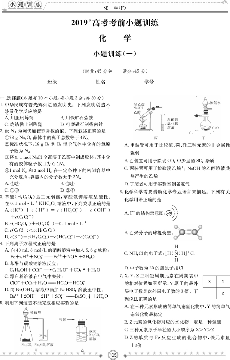 【化學】師大附中、長沙一中2019高考考前小題訓練