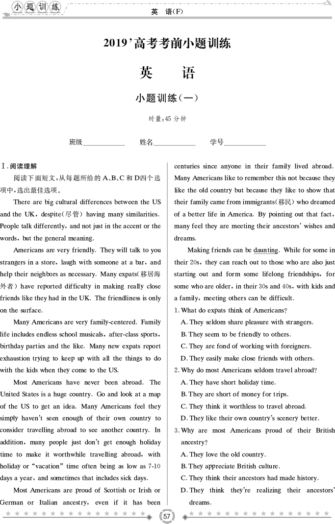 2026名師導學·高考總復習·小題量基礎周周考·英語