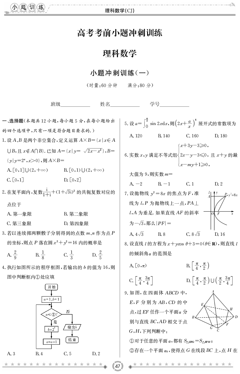 【理數(shù)】長郡中學(xué)2019高考考前小題沖刺訓(xùn)練