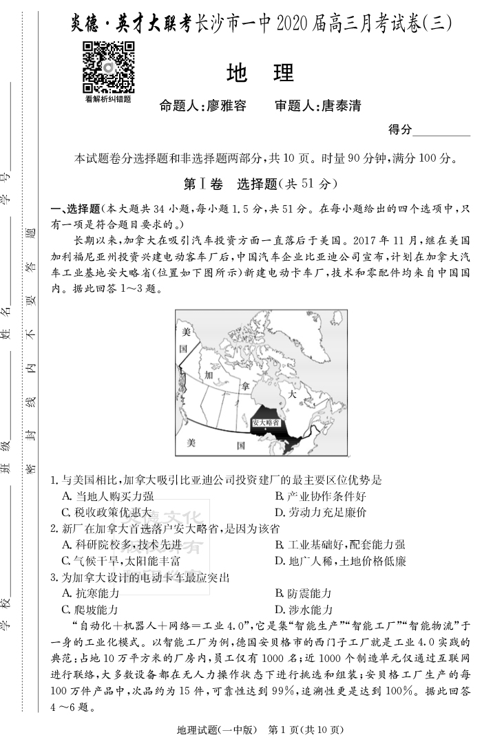 上一篇:【政治】炎德英才大聯考2020屆長沙市一中高三2次月考