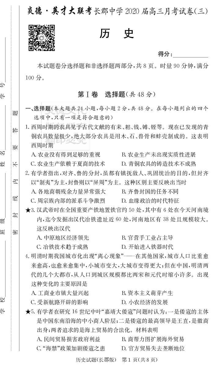 2026名師導學·高考總復習·小題量基礎周周考·歷史
