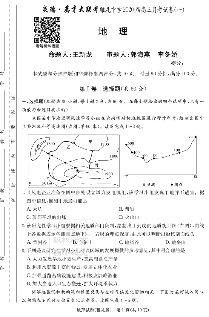 【地理】炎德英才大聯考2020屆雅禮中學高三1次月考
