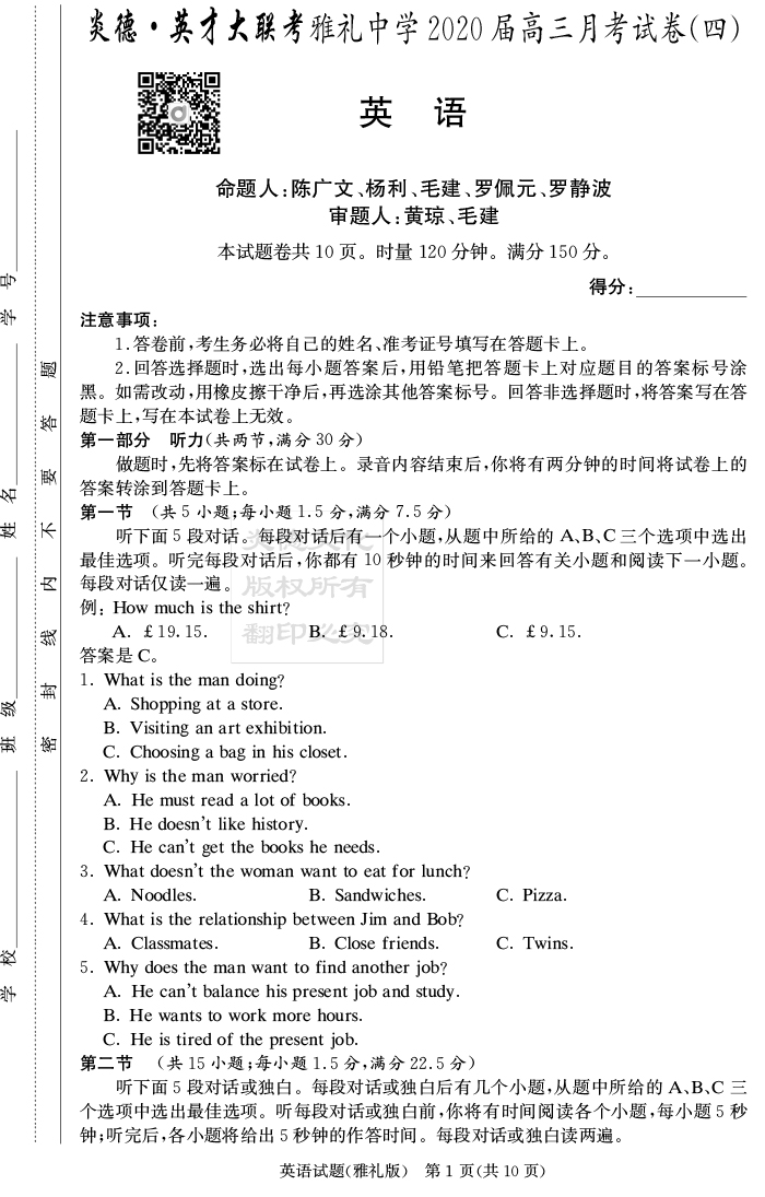 下一篇:【語文】炎德英才大聯考2020屆雅禮中學高三4次月考