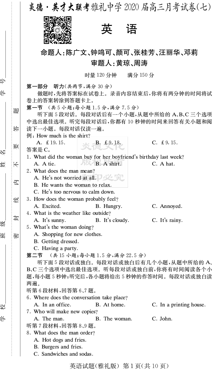 下一篇:【語文】炎德英才大聯考2020屆雅禮中學高三7次月考
