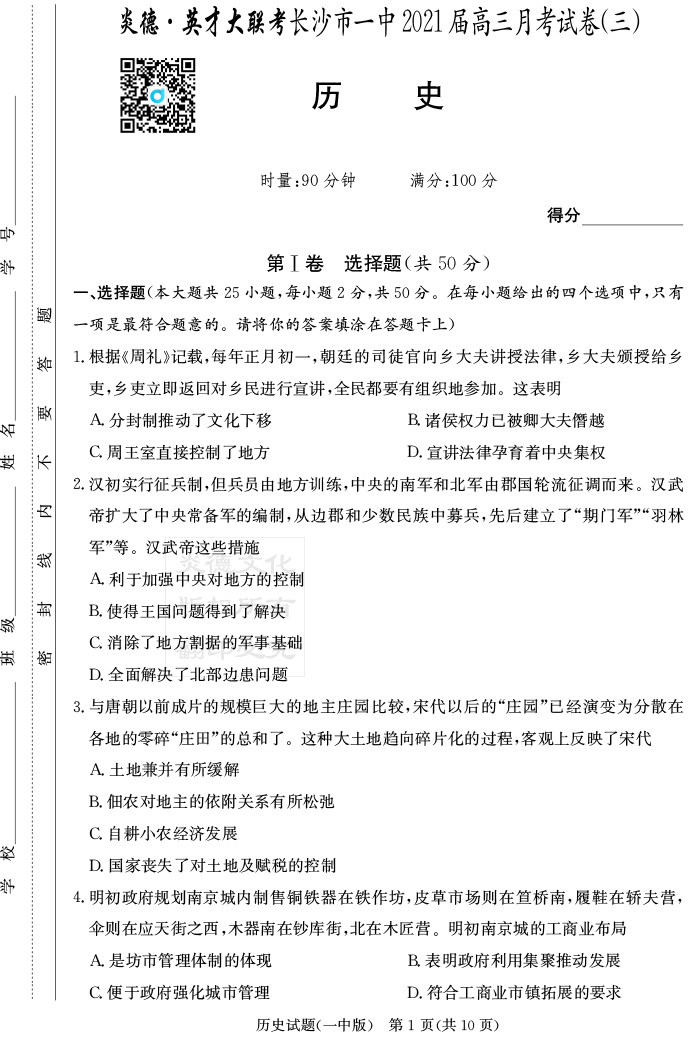 2026名師導學·高考總復習·小題量基礎周周考·歷史