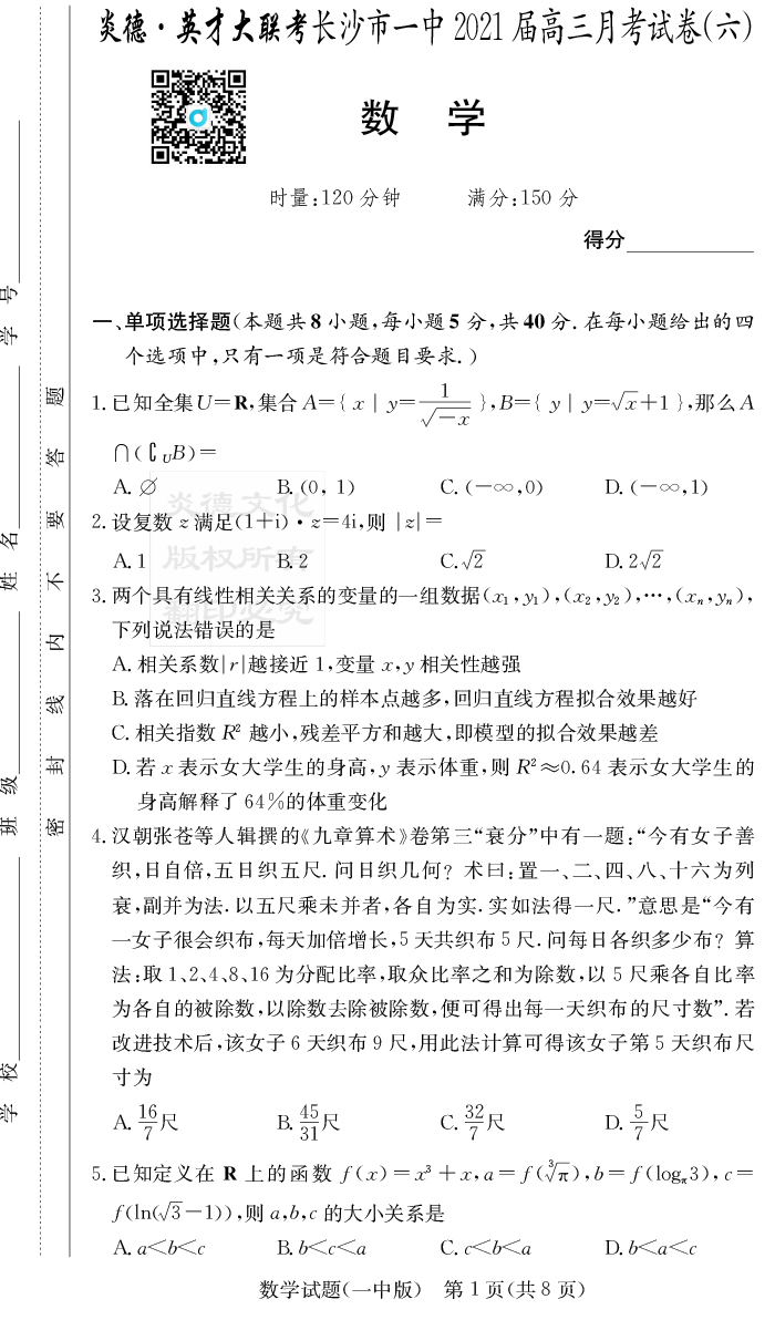 上一篇:【生物】炎德英才大聯考2021屆長沙市一中高三6次月考