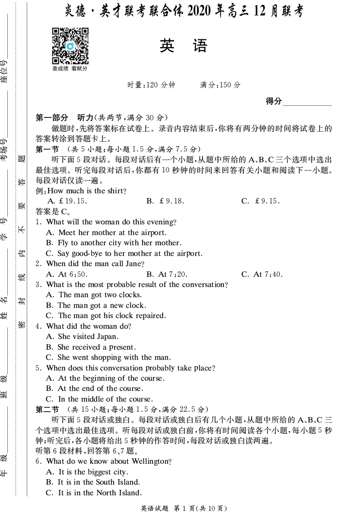 上一篇:【物理】炎德英才大聯(lián)考2021屆長郡中學高三4次月考(高三聯(lián)合體12月聯(lián)考)