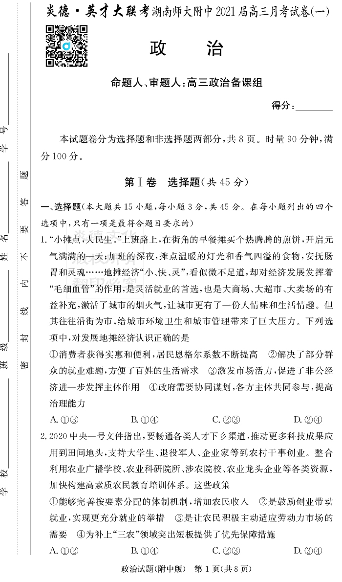 下一篇:【地理】炎德英才大聯考2021屆湖南師大附中高三2次月考