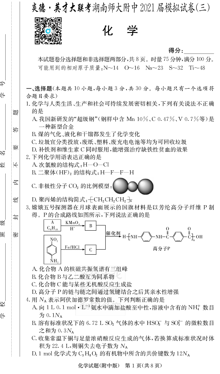 上一篇:【地理】炎德英才大聯考2021屆湖南師大附中高三10次月考(模擬三)