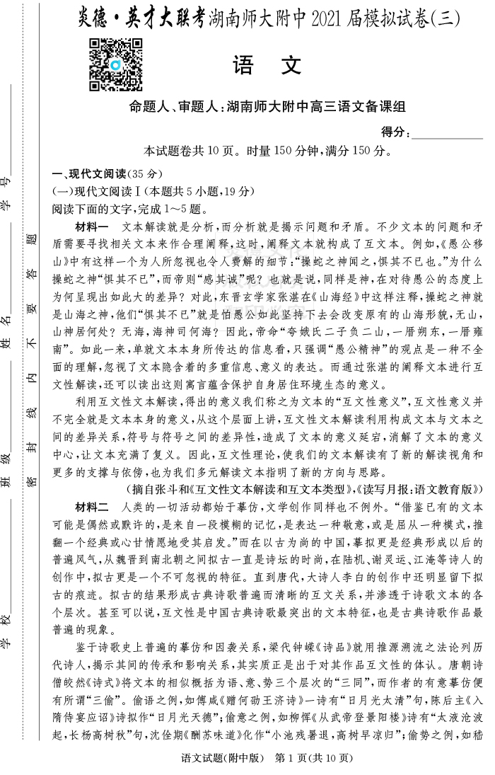 2025名師導學·名校名卷經典試題匯編·語文