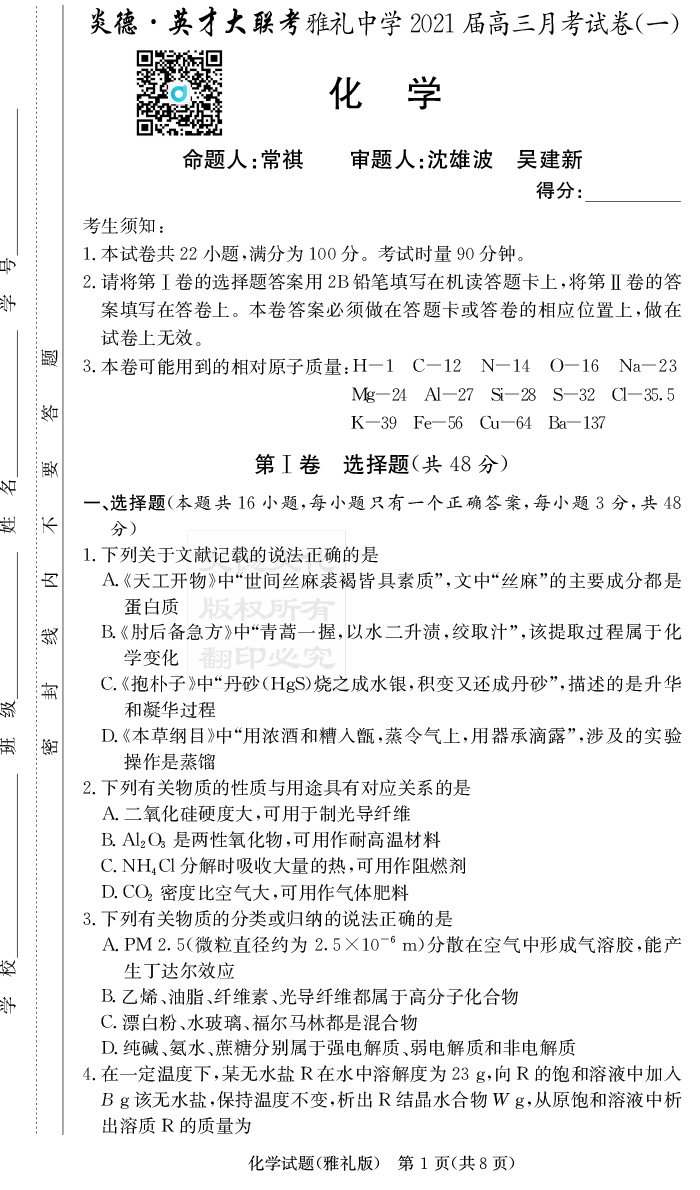 下一篇:【歷史】炎德英才大聯考2021屆雅禮中學高三1次月考