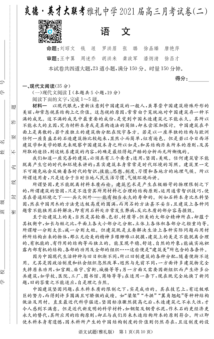 | 資源類別: | 名校月考 | |