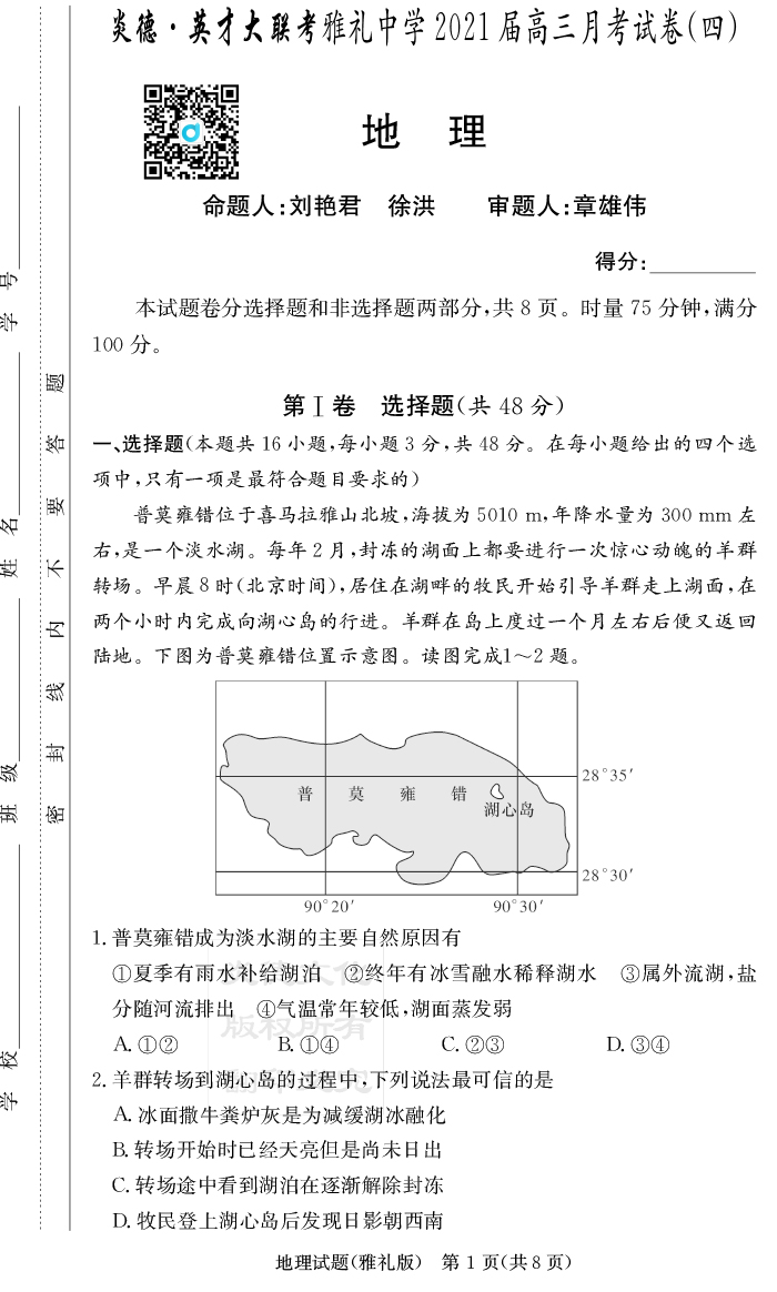 | 資源類別: | 名校月考 | |