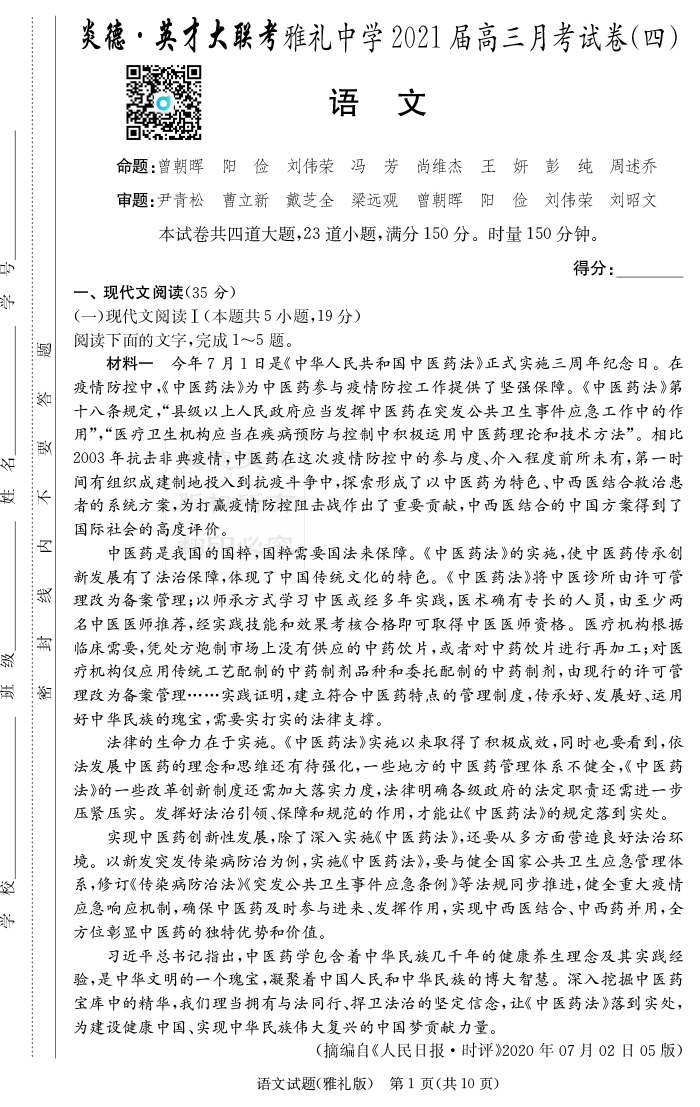 上一篇:【英語】炎德英才大聯考2021屆雅禮中學高三4次月考