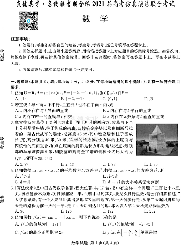 下一篇:【物理】2021年普通高等學校招生全國統一考試考前演練(五)