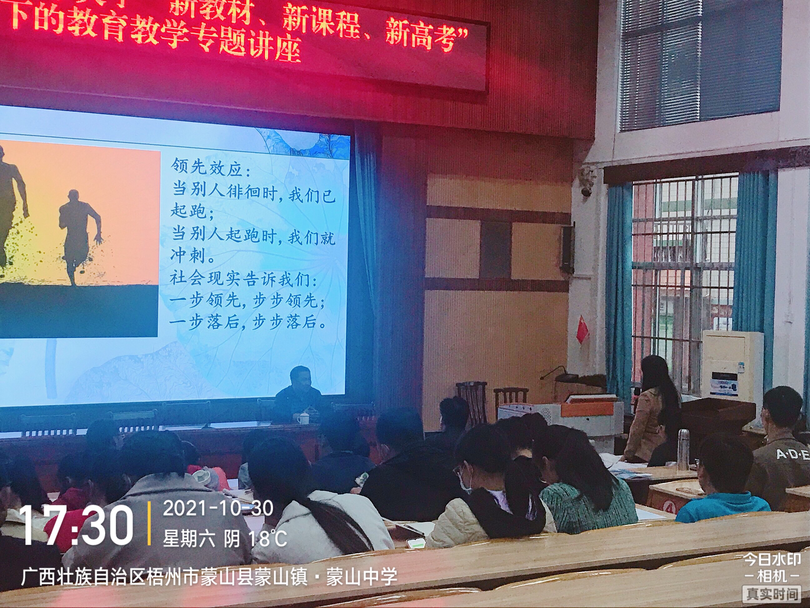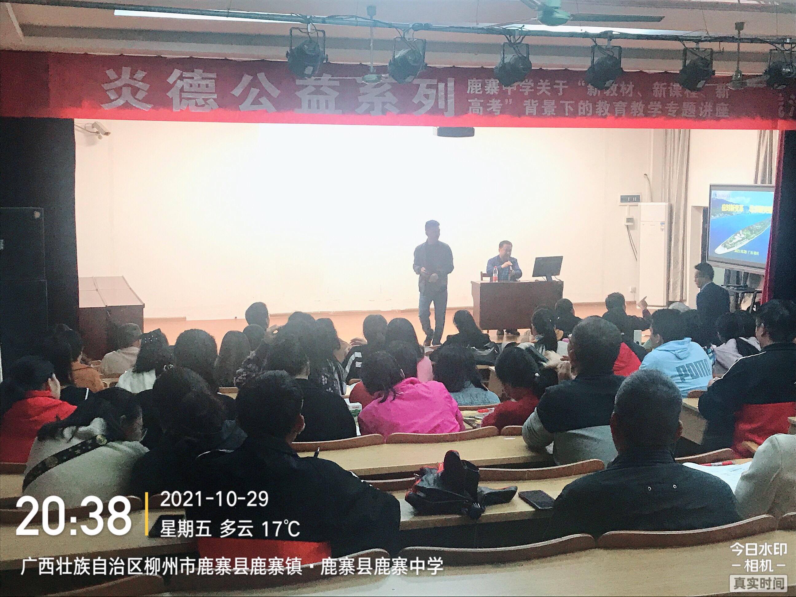 炎德文化教育服務公益行動——關于“新教材、新課程、新高考”背景下教育教學專題講座繼2021年10月15-16日在廣西梧州高中、藤縣高中和平南中學開講后,得到了教育部門、學校領導及參與老師的高度認可,反響熱烈。廣西其他區域合作學校紛紛要求再增加講座的機會,為此,公司在專家老師時間極其緊迫的情況下,為推動廣西學校新高考改革借鑒湖南名校經驗的教研落地,努力在2021年10月29日—30日繼續組織了“三新”背景下教育教學專題講座進廣西名校柳州高中、鹿寨中學、太平天國永安封王歷史名城蒙山中學、賀州昭平中學的公益活動,講座再次得到了從學校領導到老師的一致好評,認為學校找到了打開新高考教學之門的一把鑰匙,往后要更多地向湖南名校學習,并由衷感謝炎德文化提供的優秀平臺和服務。