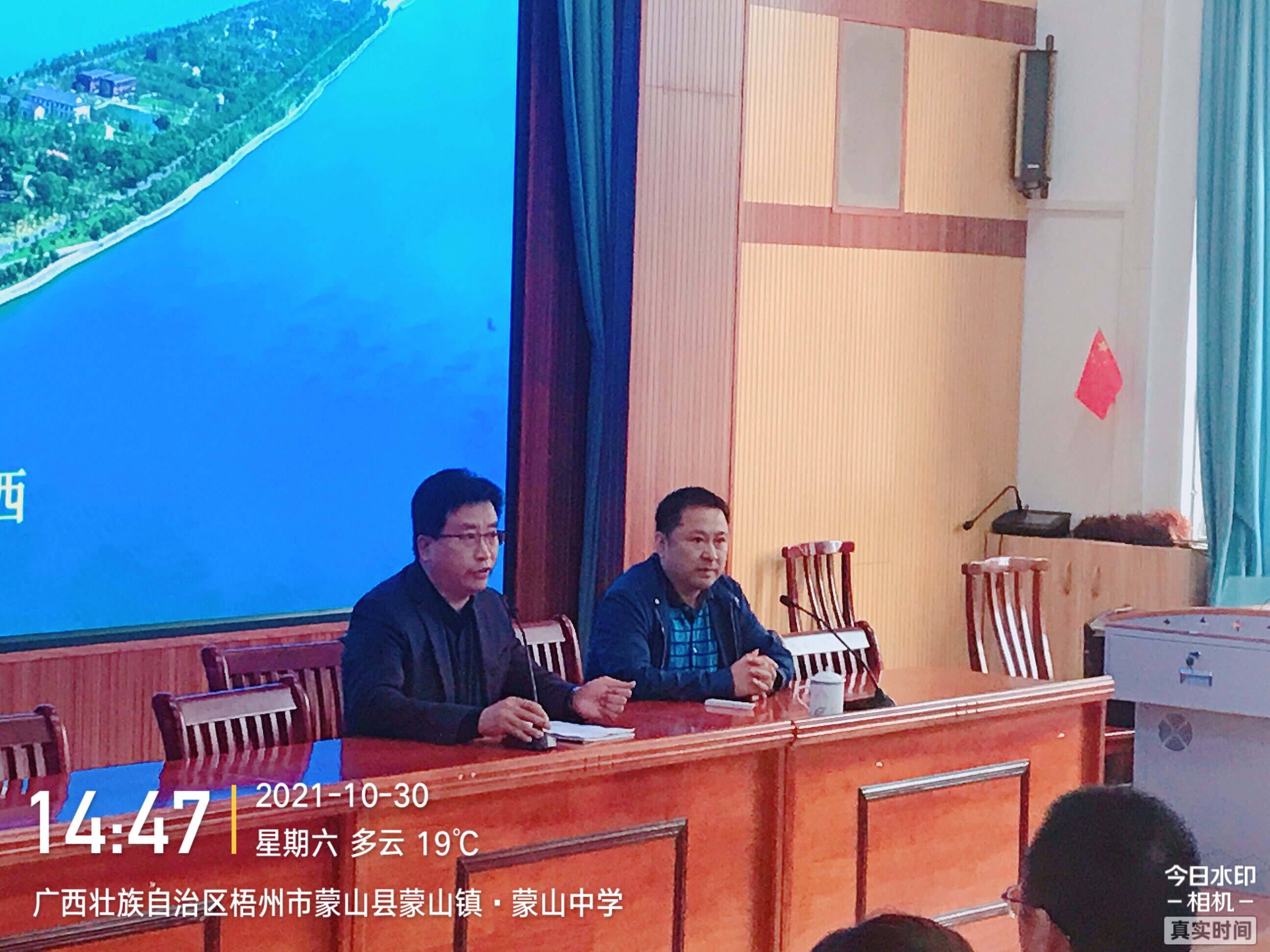 10月30日中午,驅車兩個多小時,從柳州趕往蒙山中學,蒙山中學校長馮兆民高度重視,親自主持講座,并感謝炎德文化提供的向湖南名校專家學習的機會。