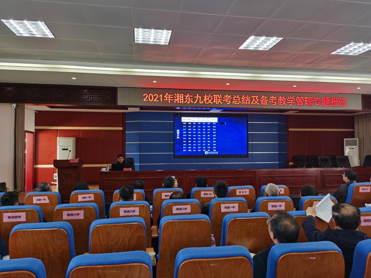 2021年12月22日上午,湘東九校2021年12月高三聯(lián)考總結(jié)會議在醴陵市四中召開,醴陵市四中、株洲市二中、醴陵市一中、瀏陽市一中、攸縣一中、茶陵縣一中、株洲市八中、株洲市四中、株洲市九方中學(xué)領(lǐng)導(dǎo)和專家參加。