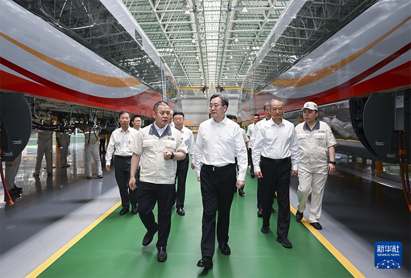 7月7日至9日,中共中央政治局常委、國務(wù)院副總理丁薛祥在黑龍江、吉林調(diào)研。這是7月8日,丁薛祥在中車長春軌道客車股份有限公司調(diào)研。(新華社記者 張領(lǐng)/攝)