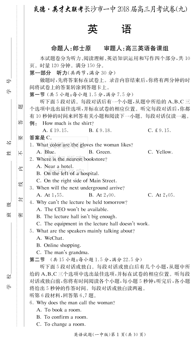 下一篇:【語文】炎德英才大聯考2018長沙一中高三9次月考